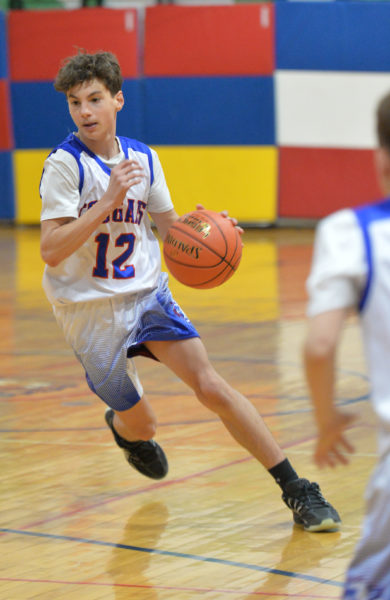 Bristol boys defeated GSB Blue 63-31. Scoring for the Blue Devils were Peter Norian 23, A.J. Nelson 13, Brooks Savage 10, Jackson Crooker 8, Sterling McKernan 5, and Nate Norian and Bodhi Brinkler 2 each. Scoring for the Cougars were Jasper Bryant 11, Wilder Hanley 10, Cyrus Reingardt 4, Miles Bowdoin 3, and Ryan Parsons 3.