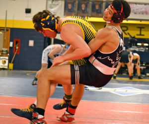 Medomak Valley’s Pease twins both won a weight class title and their teammate Reid Grindle placed second to boost the Panther team to a second place Class B finish at the KVAC championship wrestling tournament on Saturday, Jan. 24 in Augusta.
