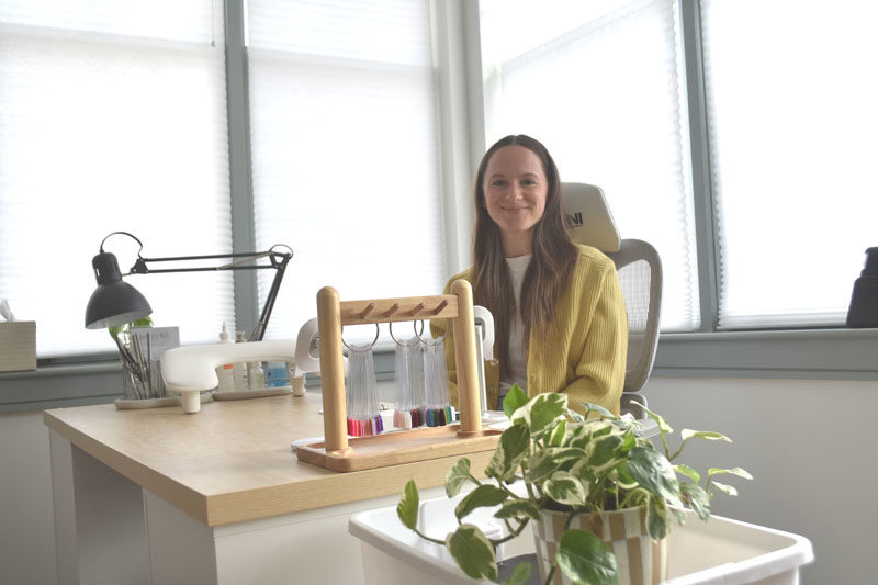 Molly Olson, of Nails by Molly, sits at her station inside her Waldoboro salon. Olson trained at the Aveda Institute in Augusta and worked at Mainely Nails in Damariscotta before opening her own salon, which she said is a dream come true. (Molly Rains photo)