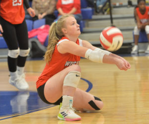 The Wiscasset girls volleyball team beat Westbrook 3-1 before a large crowd on Saturday, Oct. 18 at the Wiscasset Community Center during homecoming weekend. After the match was tied 1-1, the Wolverines persevered to win the key third set and then won the fourth set to clinch victory.