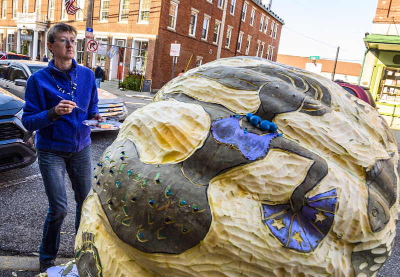 Pumpkinfest was back this year and artists swarmed Main Street in Damariscotta on Friday, Oct. 8, to turn this year’s harvest of huge pumpkins into a cornucopia of fantastical designs featuring owls and elephants, kraken and comic book characters, ships and sugar plum fairies.