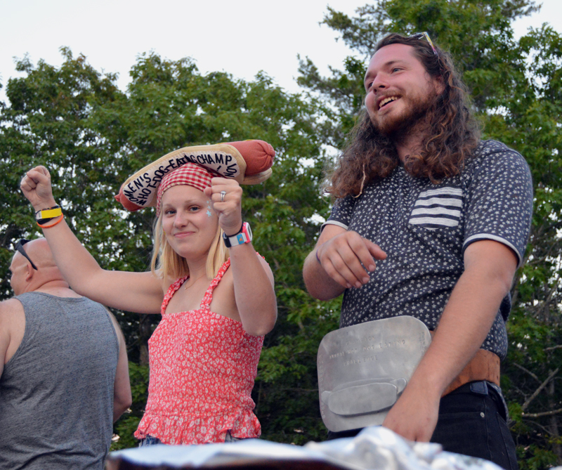 The women’s champion was Sarah Burgin, last year’s defending champion, visiting from Columbus, Ga., who ate a total of eight hot dogs. The women’s race came down to the wire, with a hot dog “eat-off” necessary to determine the winner.