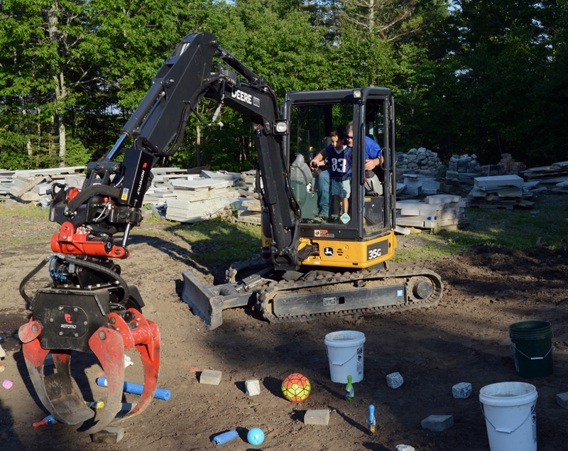 The 11th annual event at Stackhouse Landscaping in Bristol Mills on July 3 also included a pie-eating contest, a paintball target game, a dunk tank, a Mickey Mouse bounce house, face-painting, and an excavator set up to allow kids, with the help of experienced operator David Little, to pick up and drop various items into buckets of water with the large claw. The proceeds send local children to camp through the CLC YMCA and Camp Knickerbocker in Boothbay.