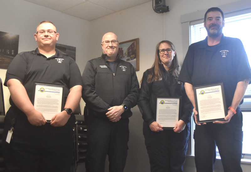 Four Waldoboro first responders were honored on Tuesday, April 22, for actions that EMS Chief Derek Booker said encapsulated the “expertise, passion, and empathy” the service strives for.