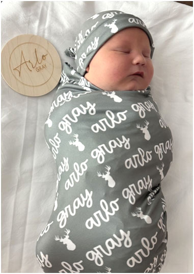 Arlo weighed 10 pounds, 10 ounces and was 22 inches long.