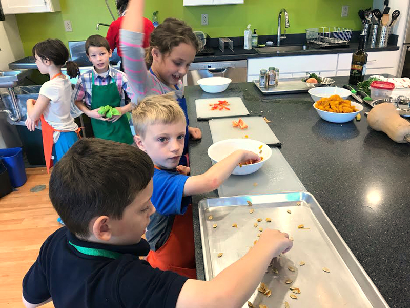 On Thursday, Oct. 25, Mary Hanna’s second grade class from Great Salt Bay Community School in Damariscotta went to the FARMS Kitchen at the Central Lincoln County YMCA. They were the third class to visit and learn about Native American food from Ms. Kleinkopf and Mrs. Miller. They used ingredients that Native Americans in this area might have used, like cornmeal, rice, blueberries, and pumpkin.