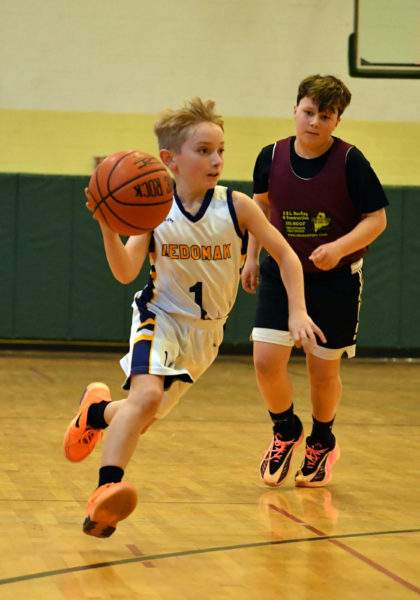 Brayden Reichard speeds toward the basket during Medomak’s 40-20 win over Richmond in the Wiscasset grade 5-6 boys basketball tournament on Friday, March 27. (Mic LeBel photo)