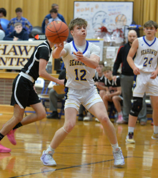 Peyton Barter passes the ball to the wing for the Seahawks. (Paula Roberts photo)