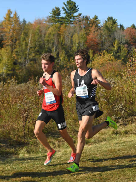 Owen Card, of Lincoln Academy, runs through an open field in the boys seeded cross country race at the Maine Festival of Champions on Saturday, Oct. 4 in Belfast. (Mic LeBel photo)