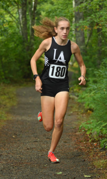 Lincoln Academy’s Karen Higgins won the girls Panther 2-Miler with a time of 11:44:64 to open the high school cross country competition season on Saturday, Aug. 30 in Waldoboro.
