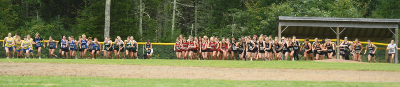 Athletes from nine high schools take off from the starting line during the girls Panther 2-Miler on Saturday, Aug. 30 in Waldoboro. (Mic LeBel photo)