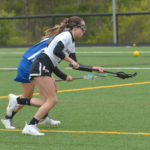 Ellie Mathew charges up the field in Lincoln Academy’s win over Lawrence. (Paula Roberts photo)