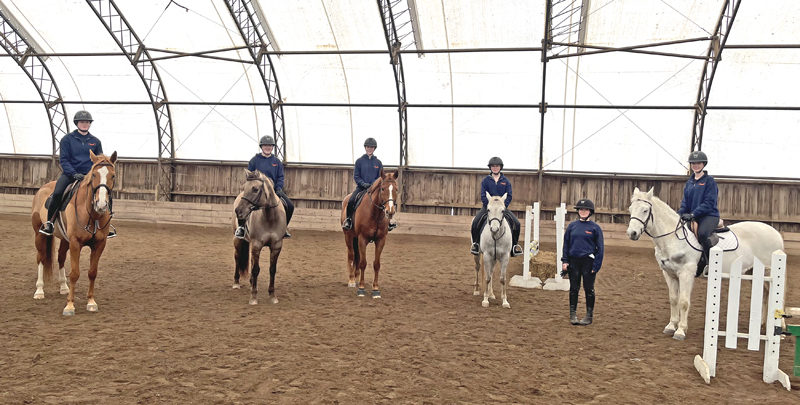 The Midcoast Maine IEA team, which trains at Stonewall Stables in Nobleboro, won the regional championship and qualified for the National Finals for the first time. From left: Emma Crooker, Isabel Bathe, Madison Moon, Leah Kirkland, Ava Genthner, and Hannah Fougner. Not pictured: Ella Curtis. (Mic LeBel photo)
